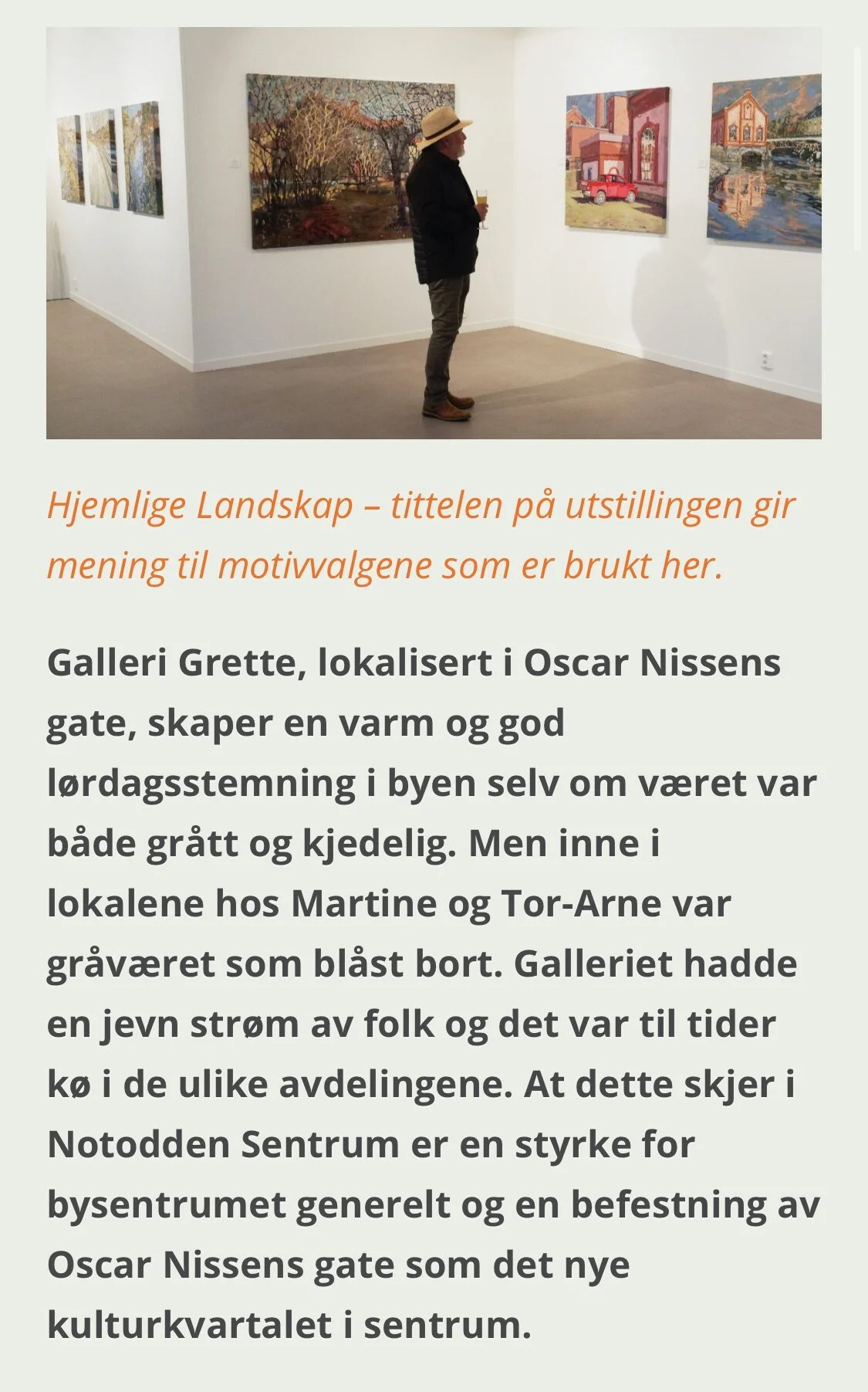 Morten Gjerde skrev en fin sak fra åpningen av utstillingen "Hjemlige landskap" i Kreativ i Notodden 16. sep. Skrevet av Martine Grette Martine Grette