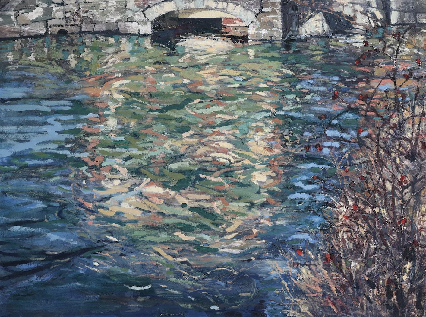 “Skumring ved kanalen” - Olje på lerret - Tor-Arne Moen 100×150 cm